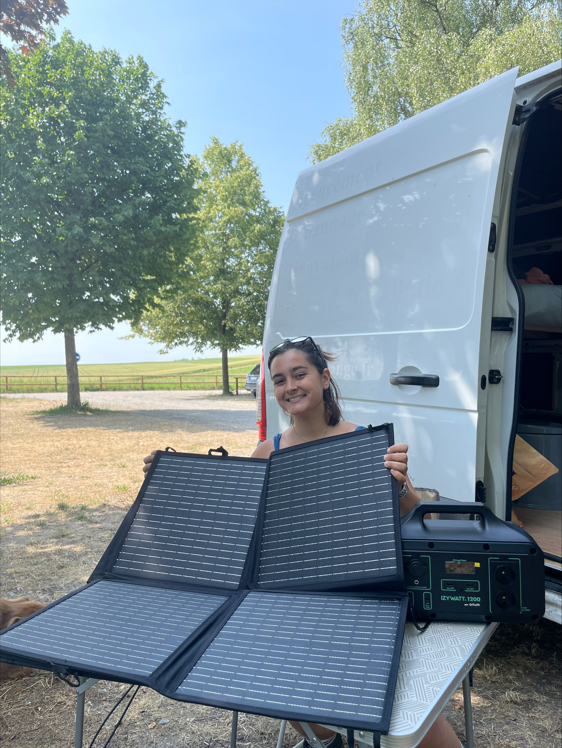 Leur batterie nomade solaire IZYWATT a parfaitement trouvé sa place à l’intérieur de leur van. Ils peuvent donc facilement la recharger en roulant grâce à la prise allume-cigare, mais également sur prise secteur lors d’escales, ou via les panneaux solaires lorsqu’ils sont en pleine nature.