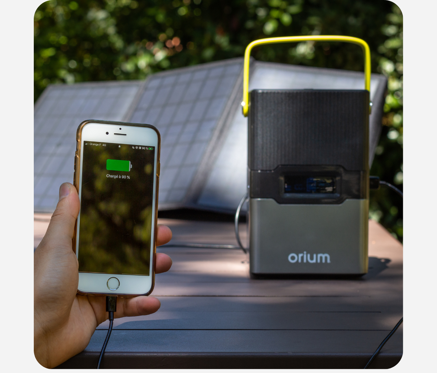 - 4 modes de charge : secteur (5 h), voiture (7 h), solaire 30W (10 h), USB-C (7 h)