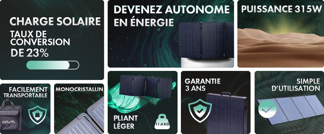 - 1 panneau solaire pliant 315W avec câbles MC4 de 2 mètres
