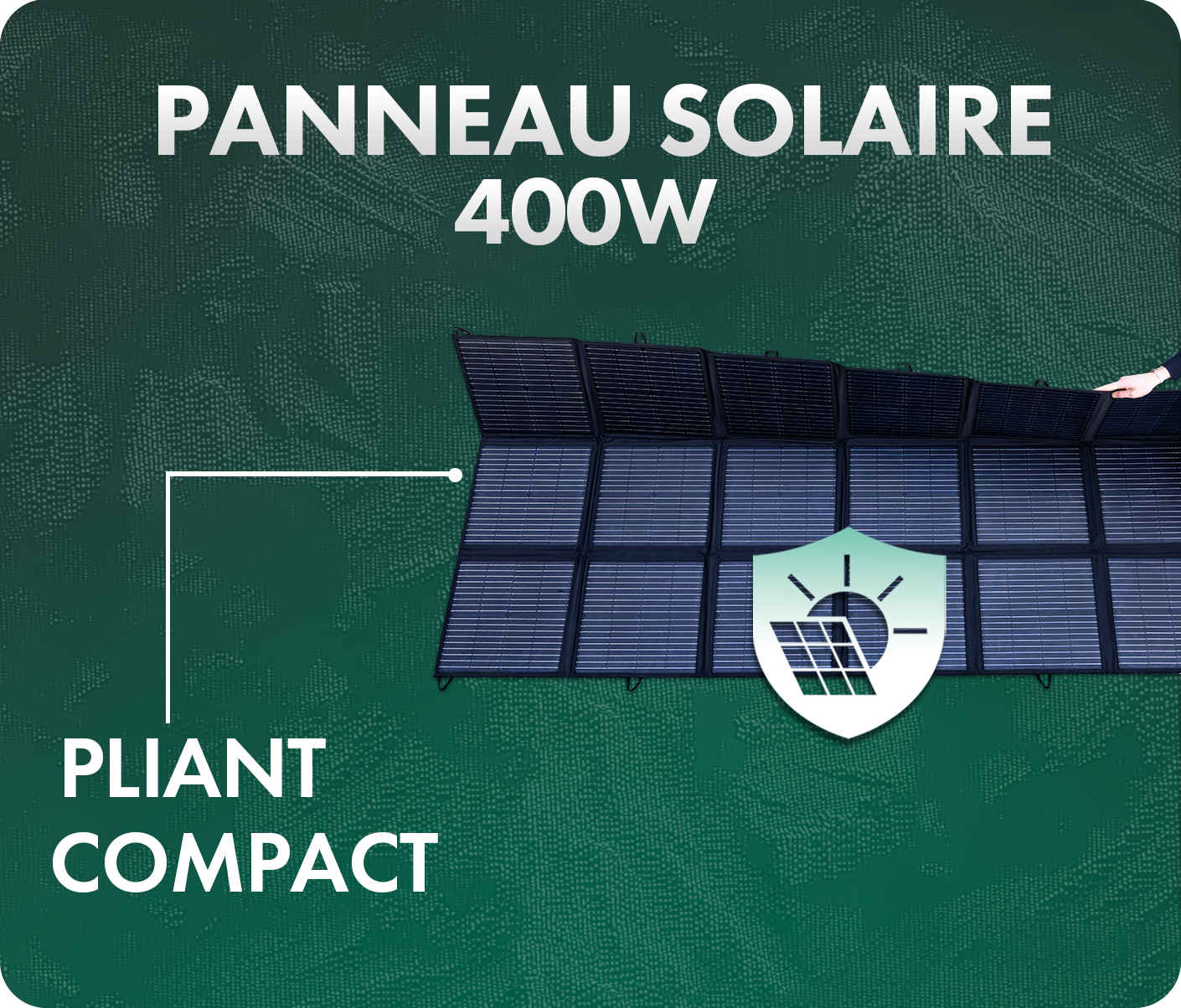 - 1 panneau solaire pliant 400W avec câbles MC4 de 2 mètres