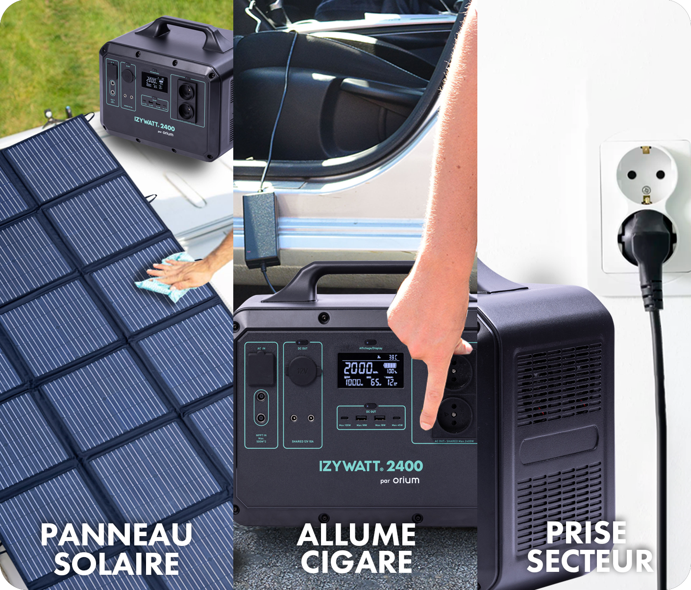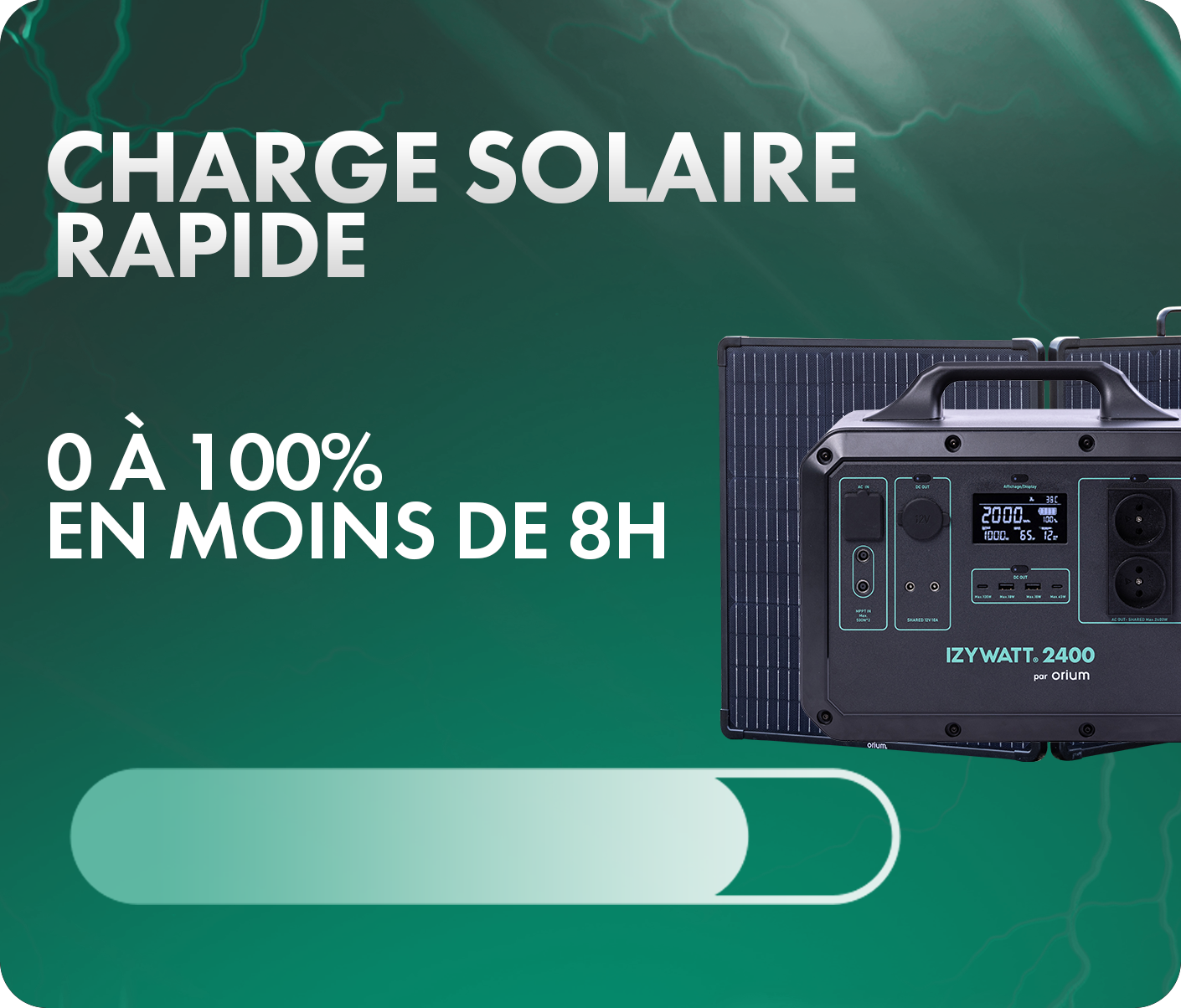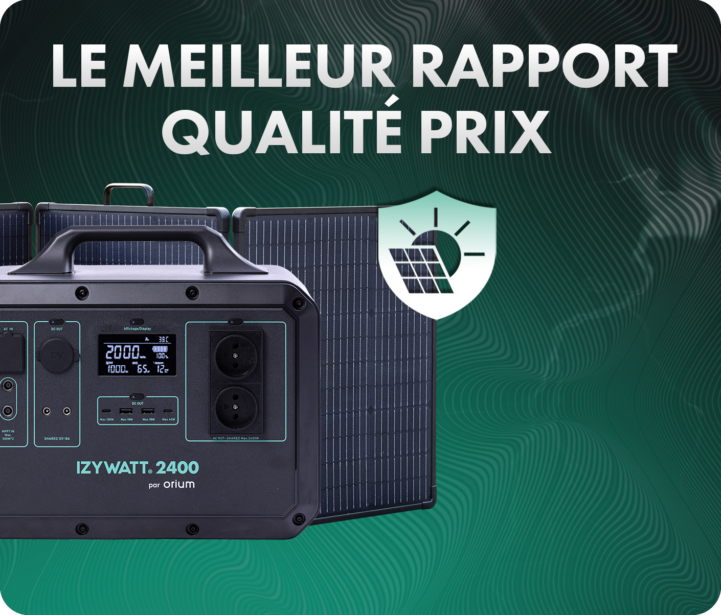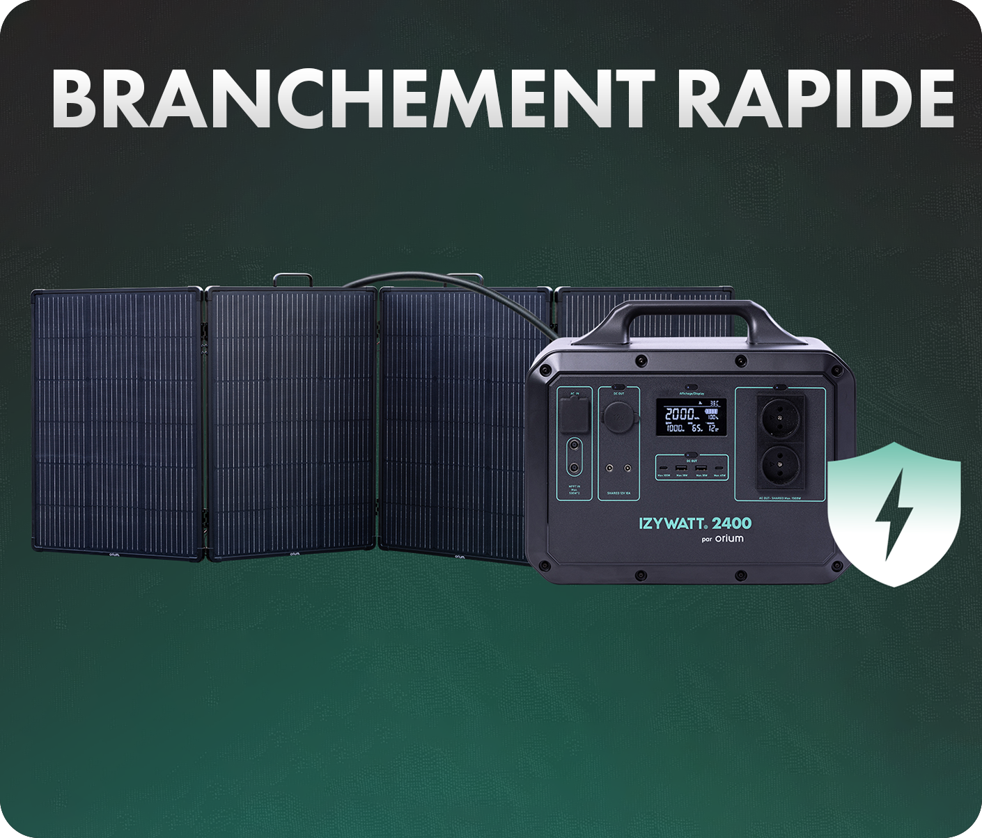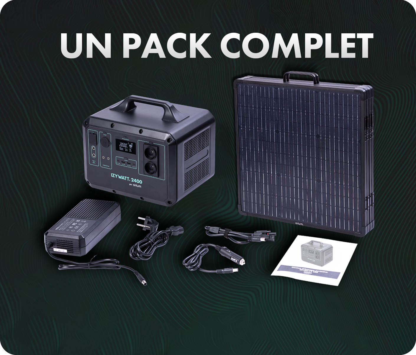 - Compo du pack : batterie IZYWATT 2400, panneau solaire 315W et accessoires