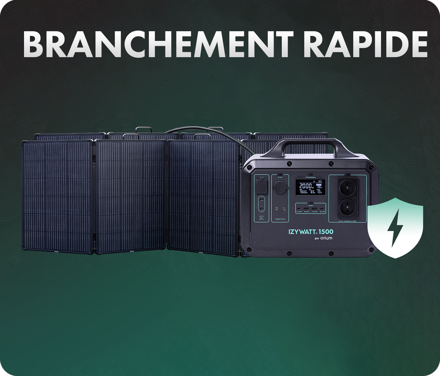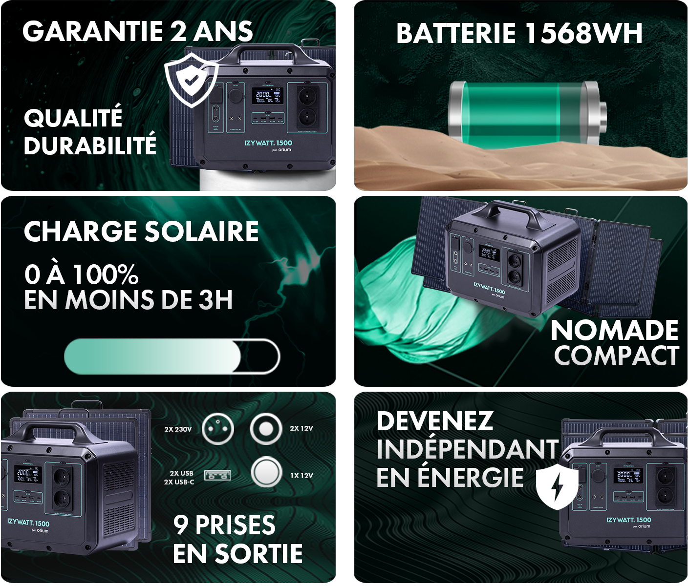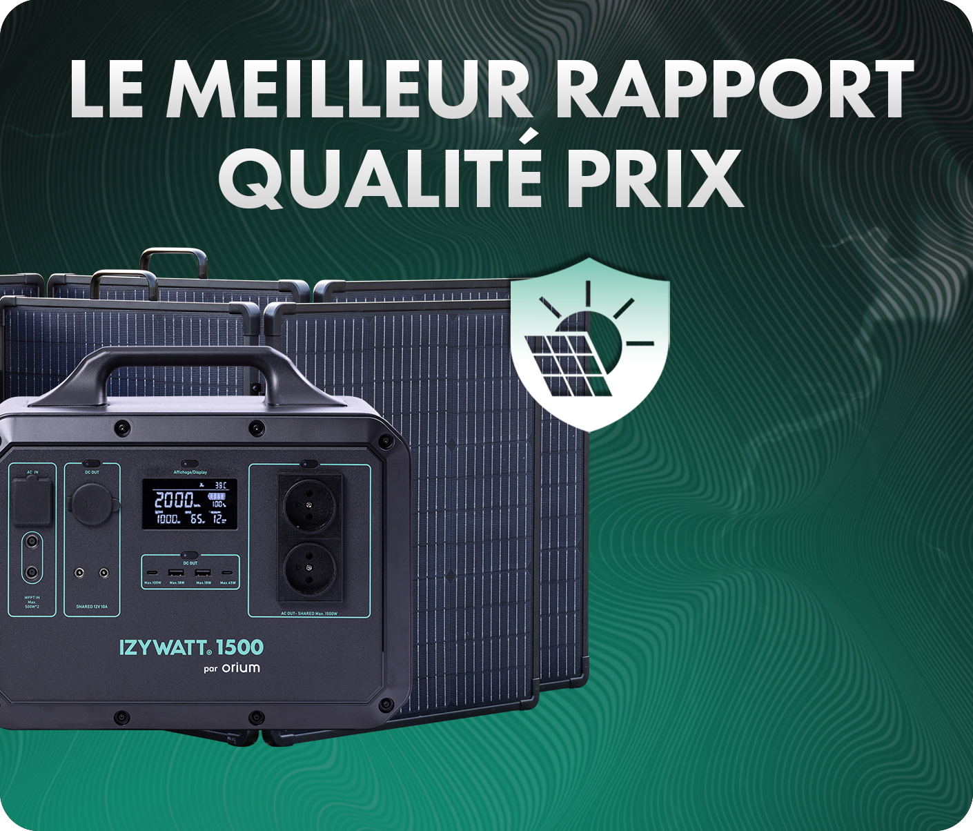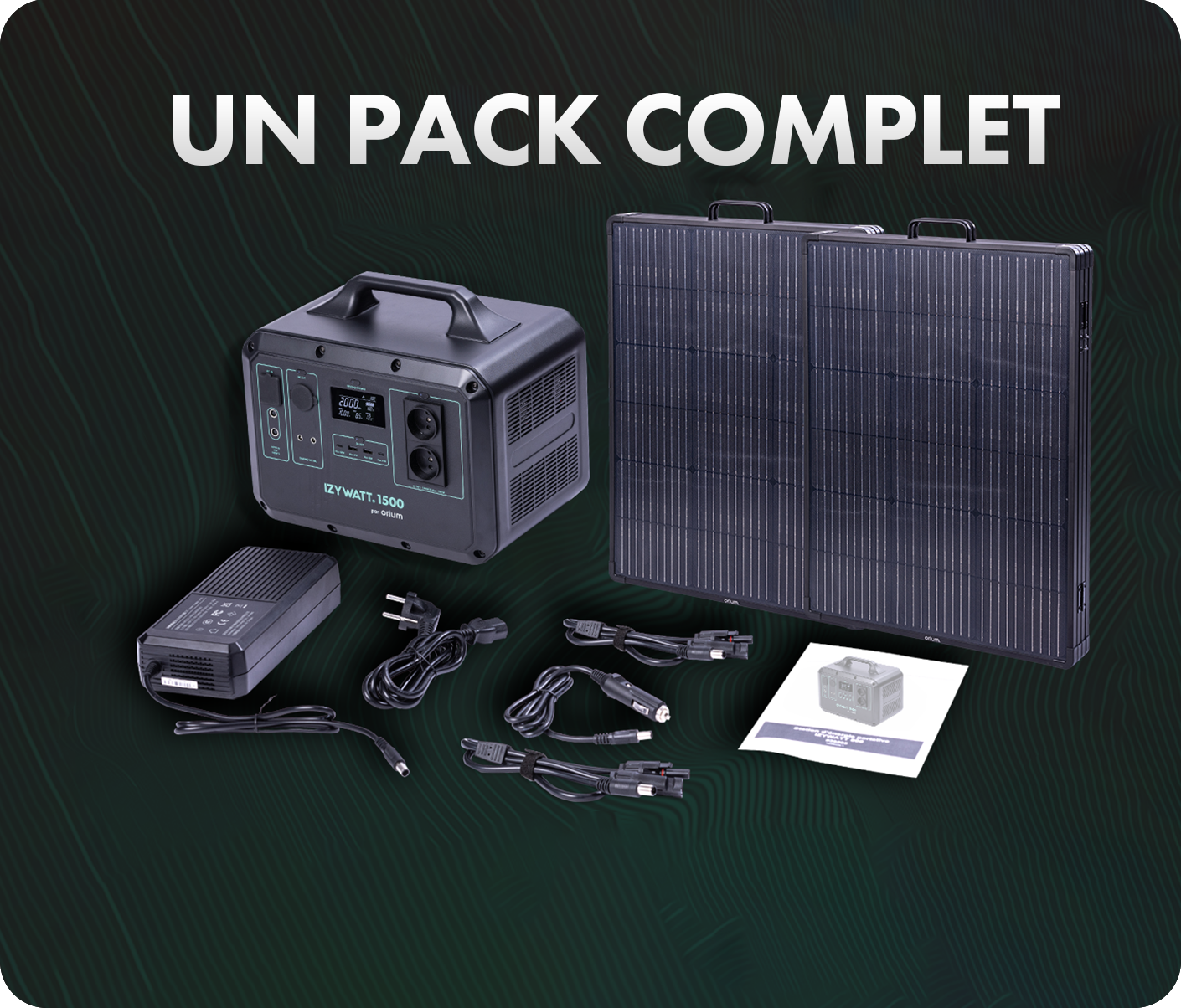 - Compo du pack : batterie IZYWATT 1500, 2 panneaux solaires 315W et accessoires