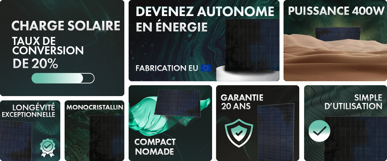 - Technologie : Monocristalline ultra résistant et autonettoyant de fabrication UE